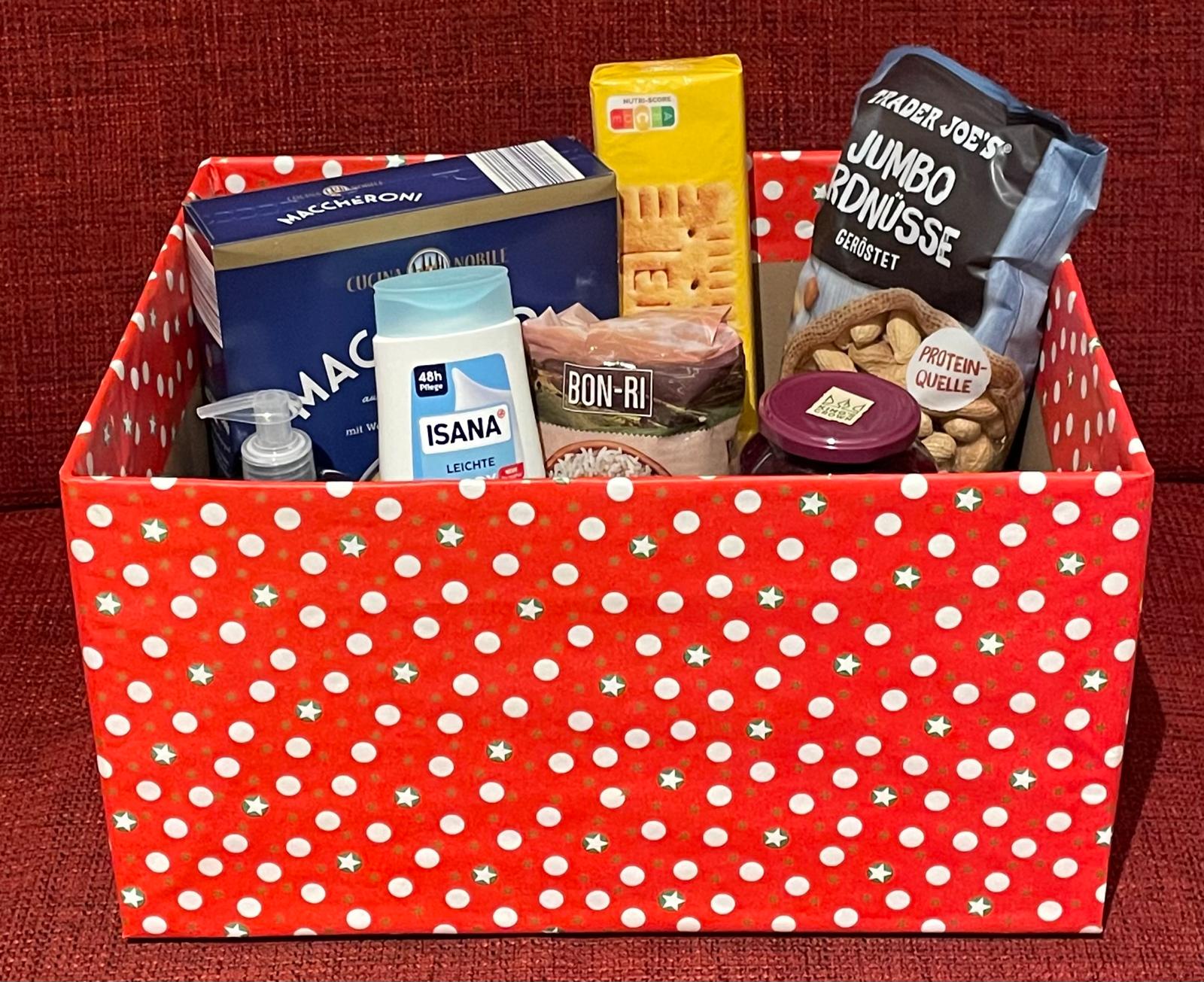 Es sollten allerdings nur Sachen in der Kiste liegen, die keinen Alkohol enthalten (wie etwa Pralinen mit Likör oder ähnliches)!